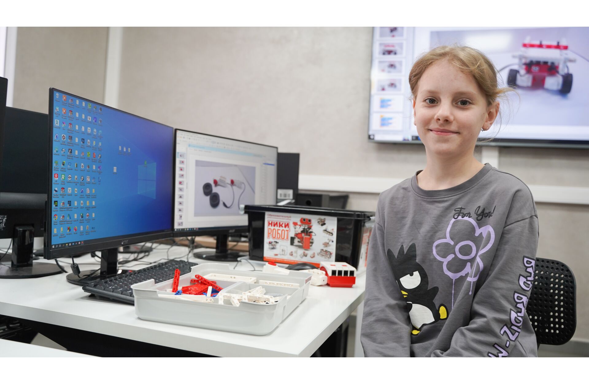 На занятиях ребята знакомятся с конструктором, изучают способы сборки и осваивают основы программирования робота в среде визуального программирования mBlock.