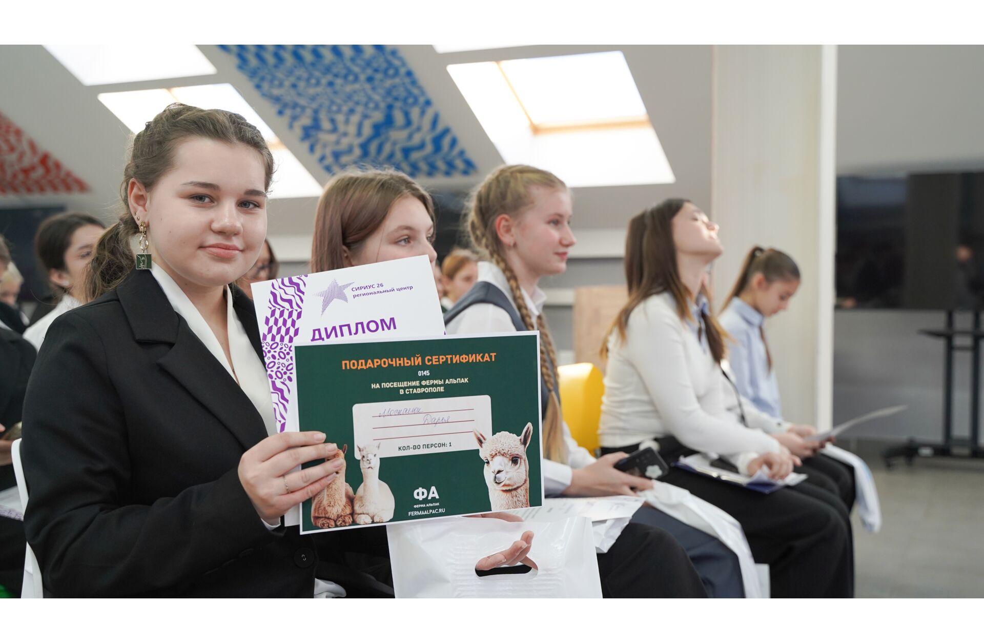 Победителям вручены особенные подарки от спонсора Конференции - Фермы Альпак, федеральной сети пикник-парков, расположенных по всей России, предлагающей уникальный формат экскурсий. На территории можно встретить самых контактных пушистиков: альпак, лам, кроликов и многих других. Победители в каждой секции получили сертификаты на посещение Фермы.