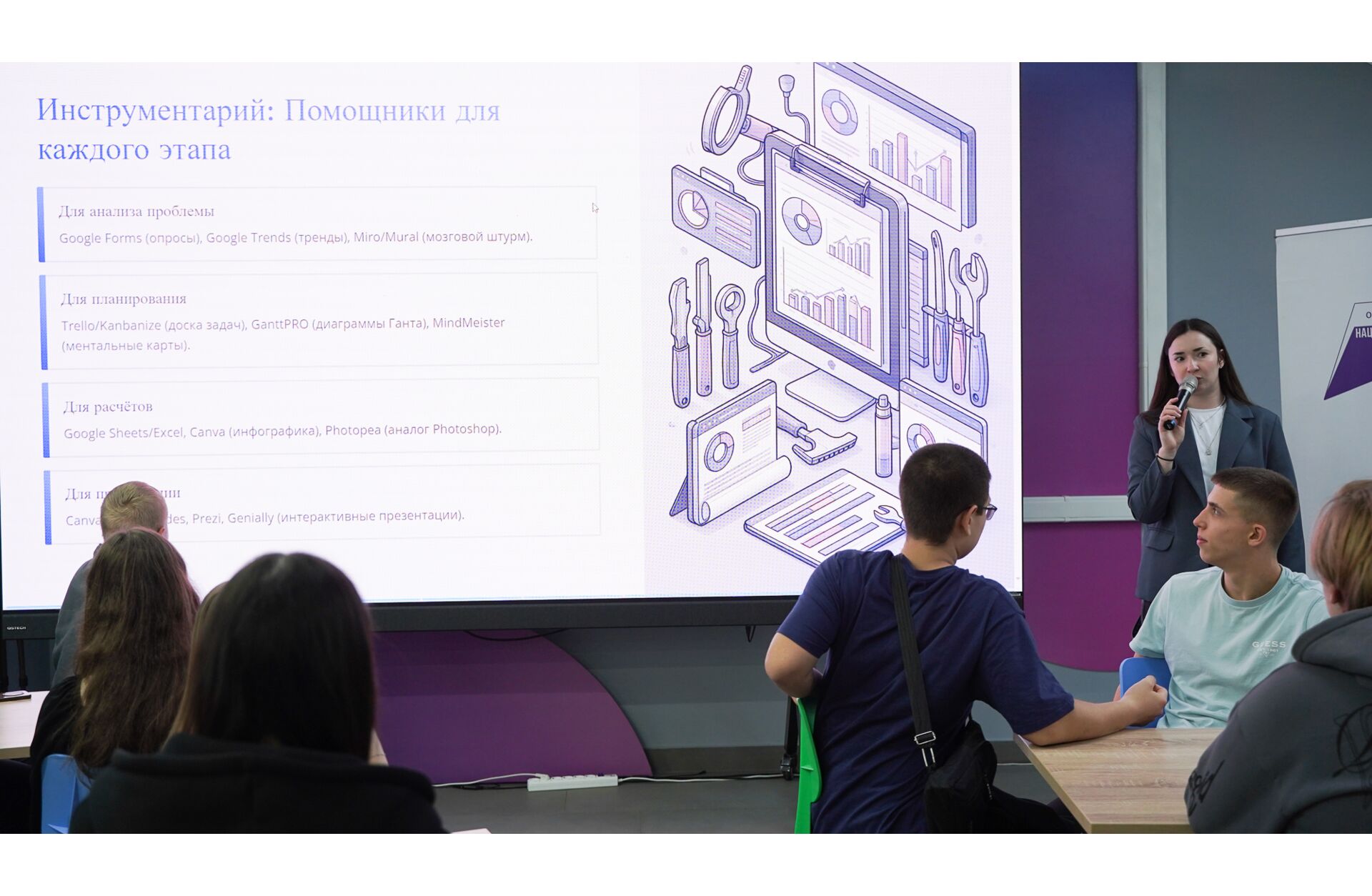 Вчера участники шести проектных групп приняли участие в интерактивном занятии по технологии подготовки проектов.