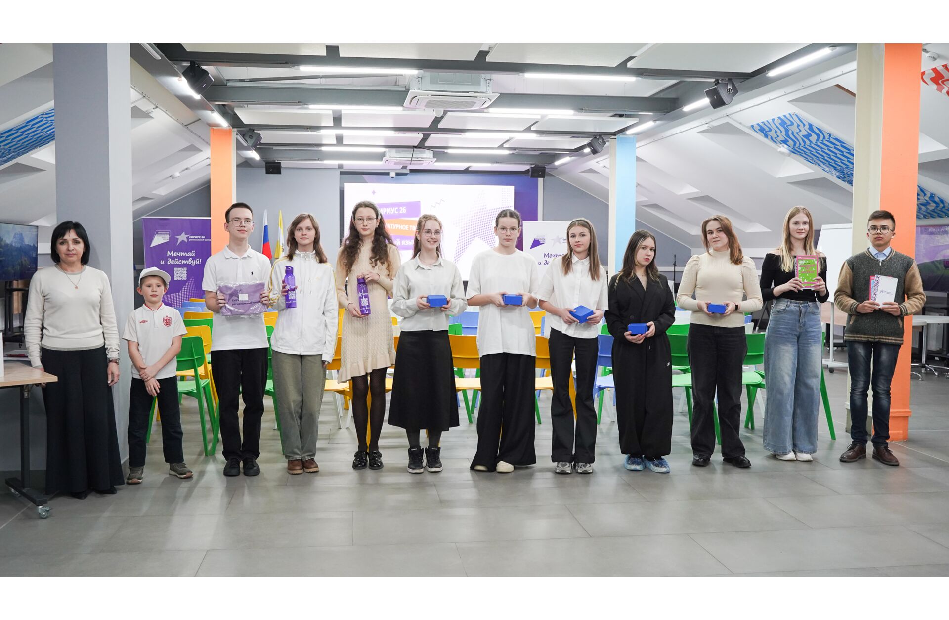 Несмотря на это, ребята успешно справились с заданием. И, конечно, среди них были выявлены лучшие — победитель и призёры. Им достались памятные подарки — мерч регионального центра «Сириус 26».
