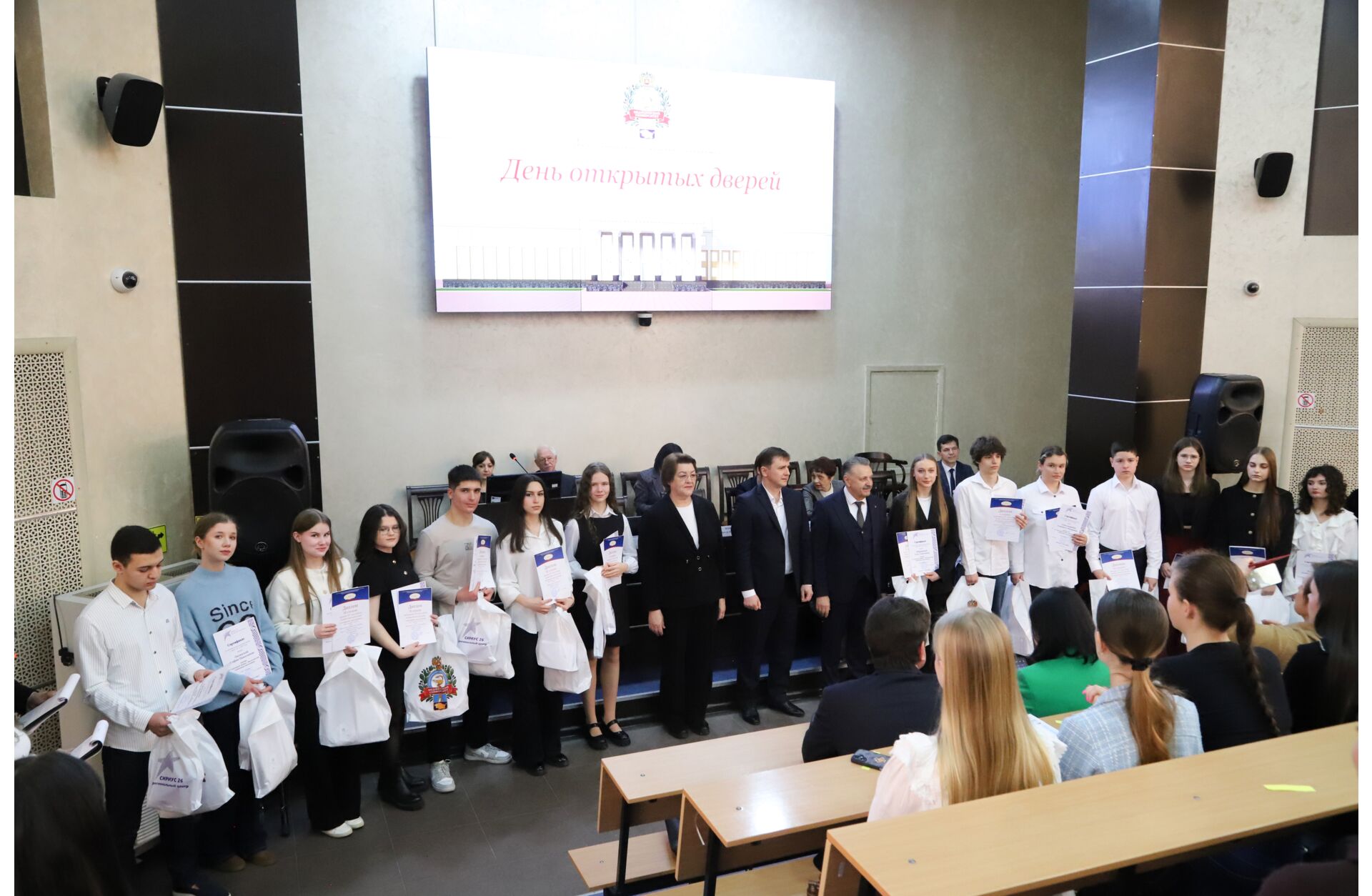 По традиции в рамках Дня открытых дверей состоялось торжественное награждение победителей и призёров медико‑биологической олимпиады школьников. Успехи в этом состязании особенно ценны: они дают абитуриентам дополнительные баллы при поступлении в СтГМУ.