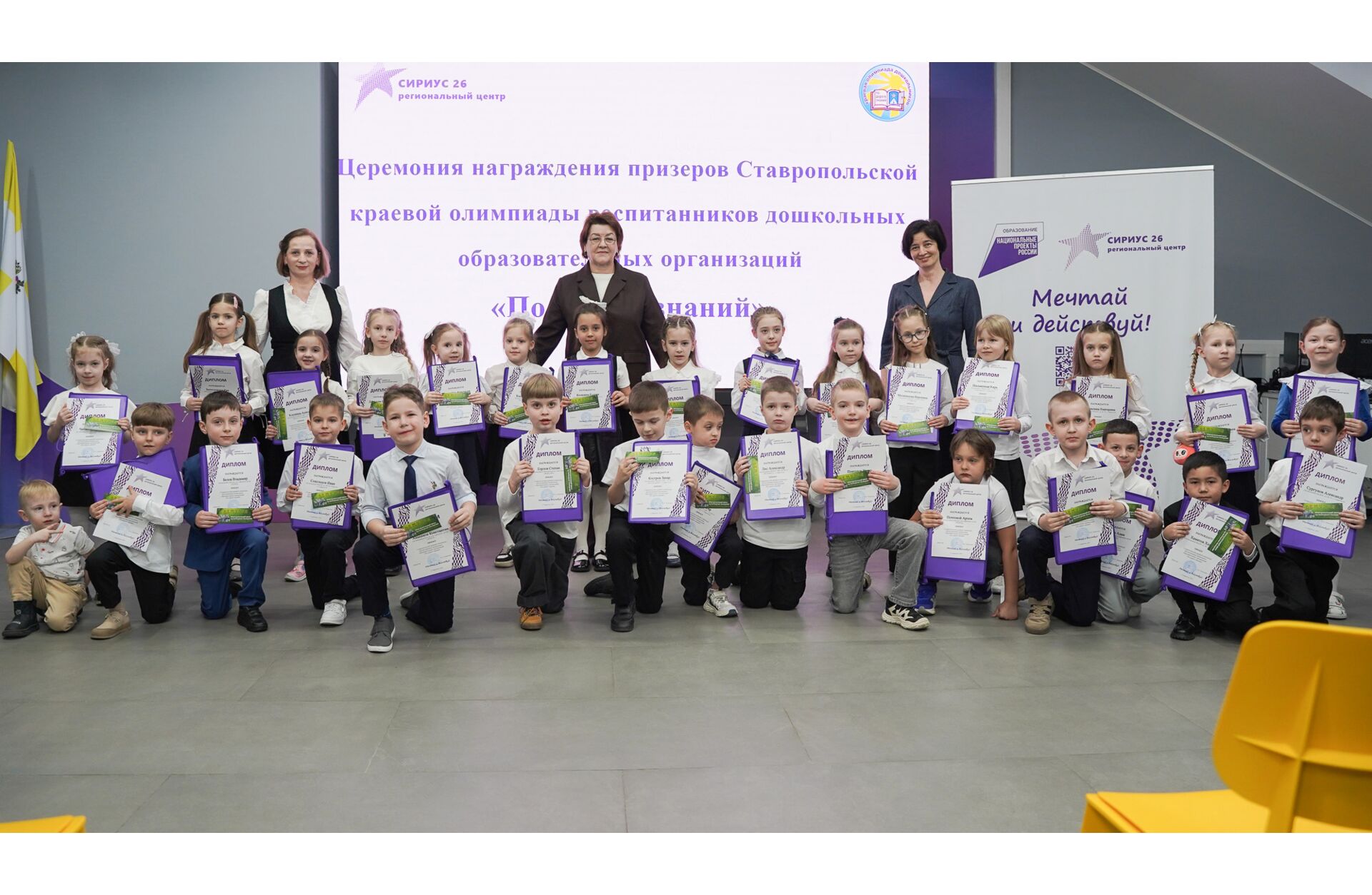 В региональном центре «Сириус 26» прошла церемония награждения призеров Ставропольской краевой олимпиады воспитанников дошкольных образовательных организаций «По дороге знаний», проживающих в городе Ставрополе.